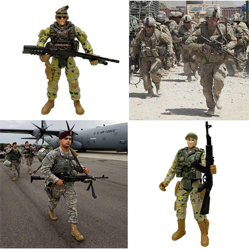 The 6 soldiers are all front-line personnel on the battlefield. They are armed with different weapons and defend the country on the front line. They can turn their arms, feet and heads.