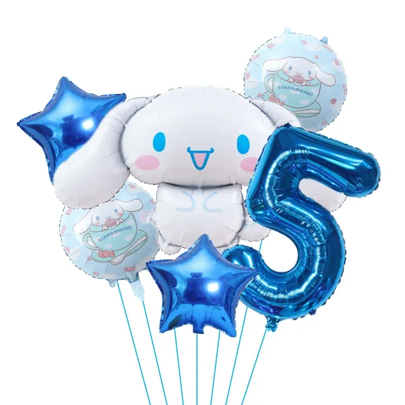 6pcs Cartoon Cute Kuromi My Melody Cinnamoroll Foil Balloon 32 Inch Number Set Children's Birthday Party Decorative
