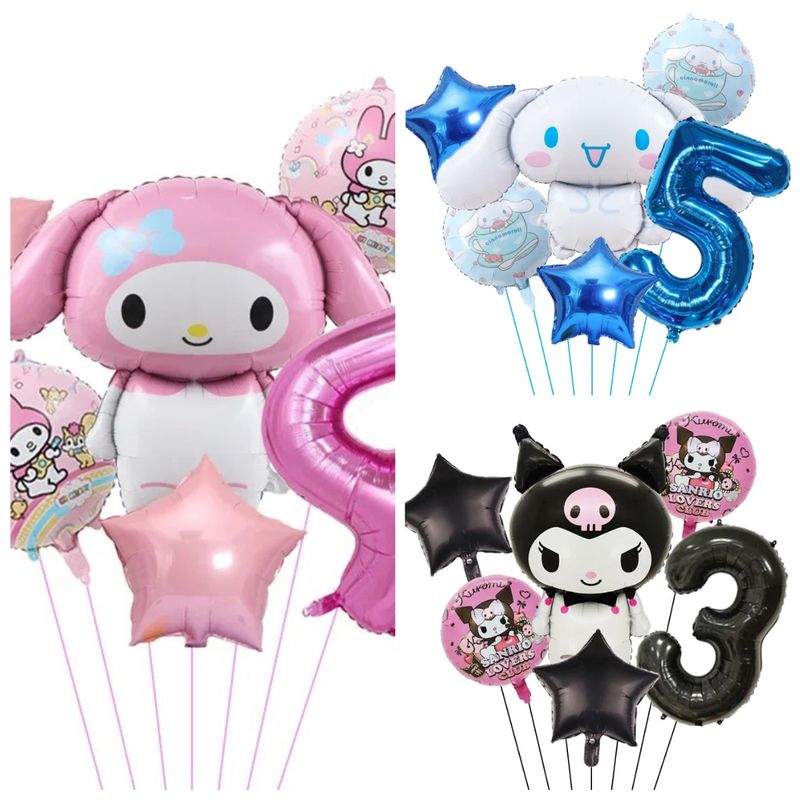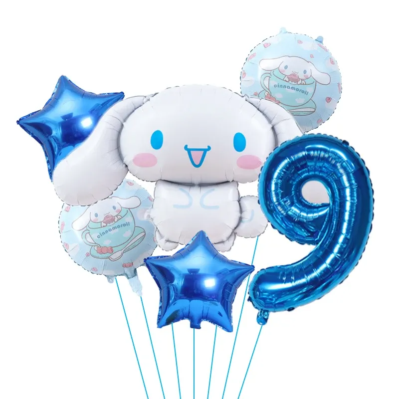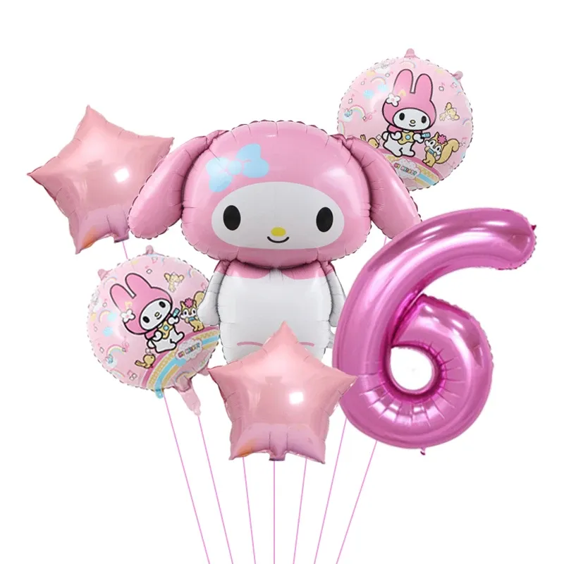 6pcs Cartoon Cute Kuromi My Melody Cinnamoroll Foil Balloon 32 Inch Number Set Children's Birthday Party Decorative
