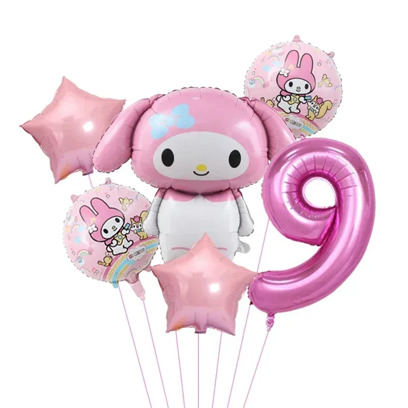 6pcs Cartoon Sanrio Cute Kuromi My Melody Cinnamoroll Foil Balloon 32 inch Number Set Children's Birthday Party Decorative Toys
