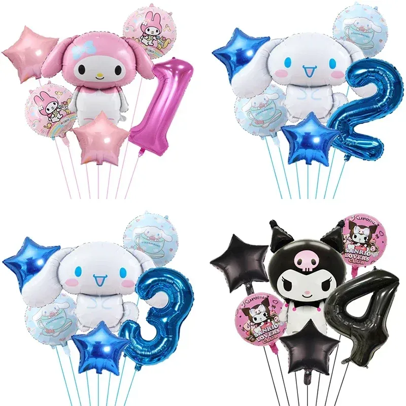 6pcs Cartoon Sanrio Cute Kuromi My Melody Cinnamoroll Foil Balloon 32 inch Number Set Children's Birthday Party Decorative Toys