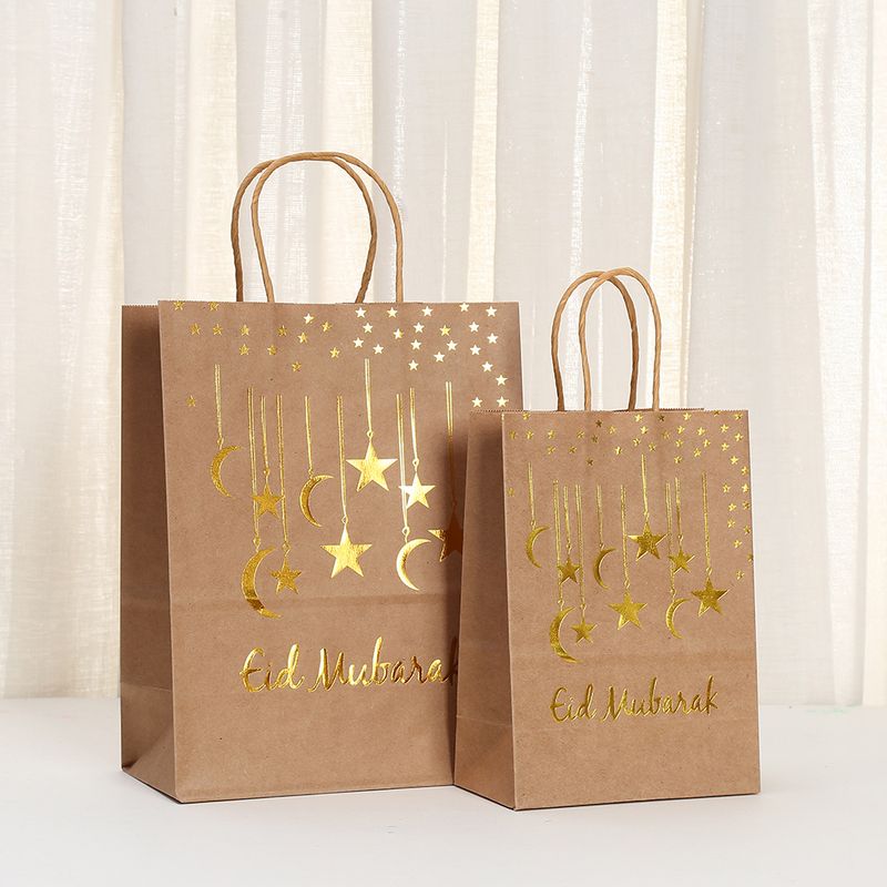 6pcs Eid Mubarak Kraft Paper Gift Bags 2025 Ramadan Kareem Candy Dessert Packaging Bag Islamic Muslim Party Decoration Supplies