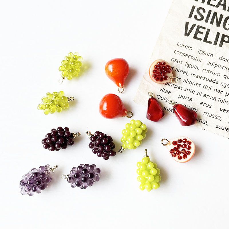 6pcs Grape Fruits Resin Food Charms Diy Findings Kawaii 3D Keychain Bracelets Earring Pendant Charms for Jewelry Making Suppplies