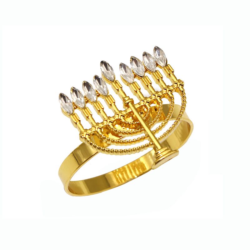 6Pcs Hanunkkah Candlestick Napkin Rings Crystal Menorah Napkin Holder Gold Napkin Buckle for Hanunkkah Wedding Dinner Table Dec