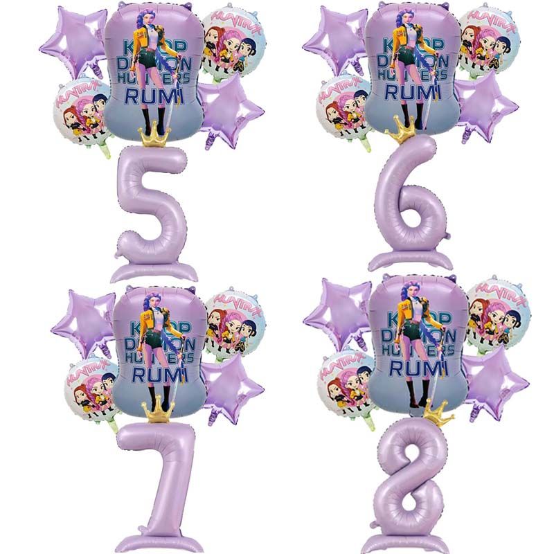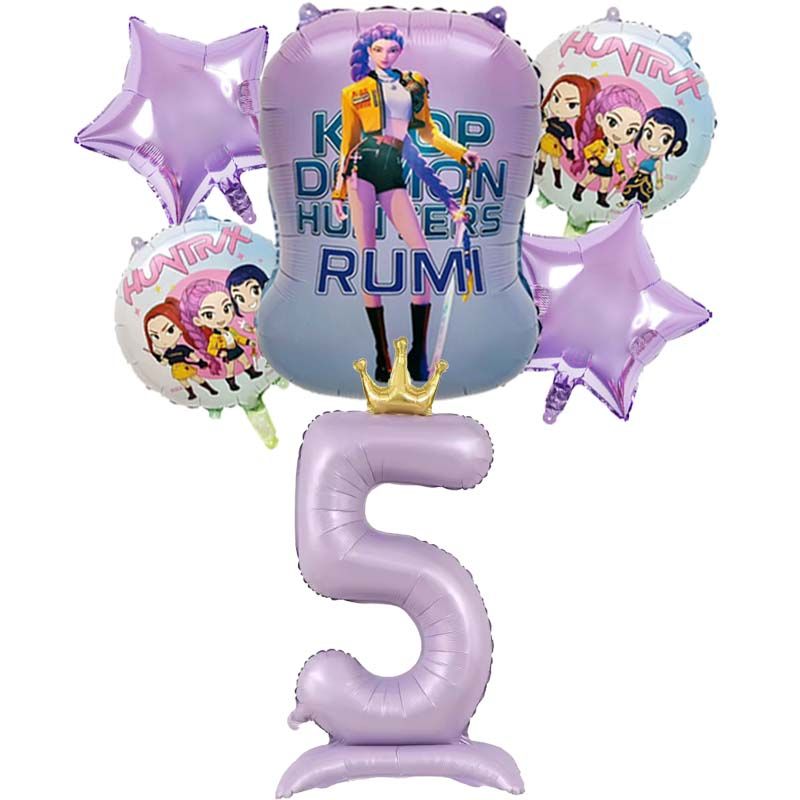 6pcs K pop Demon Hunters Birthday Balloon Decoration Set Music Girl Number Aluminum Ballons Baby Shower Party Supplies Decor