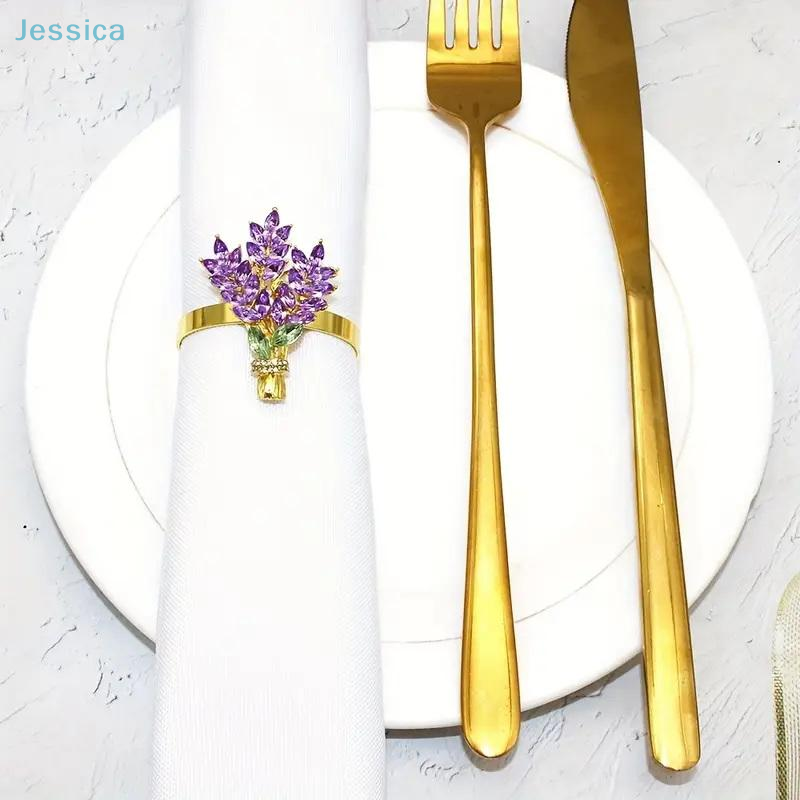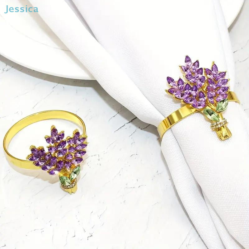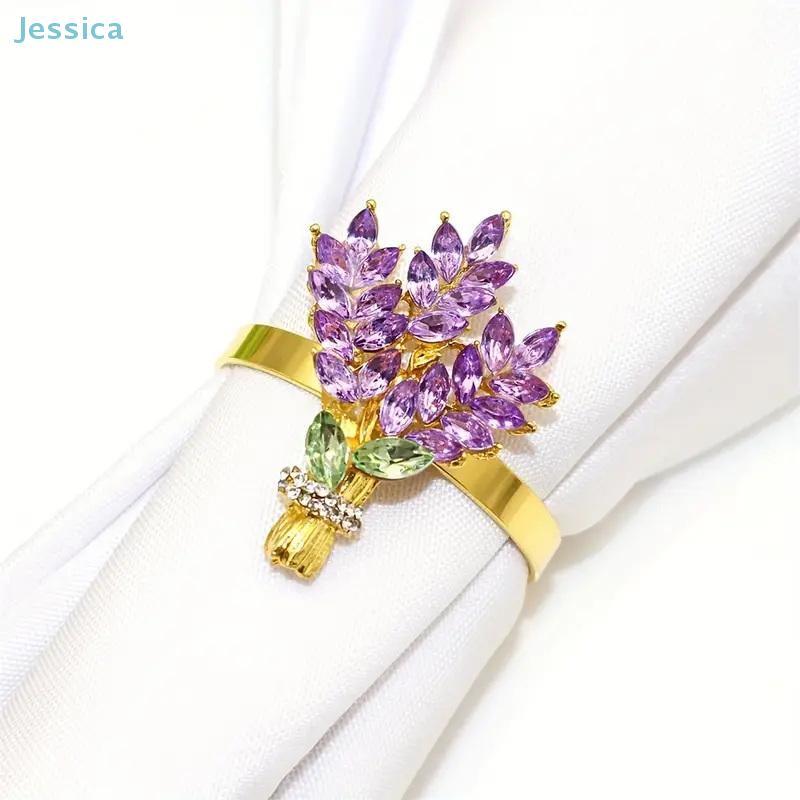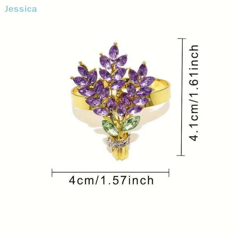 1. Elegant Design: These purple lavender napkin rings feature a unique and elegant design, enhanced with crystal flower embellishments.
