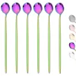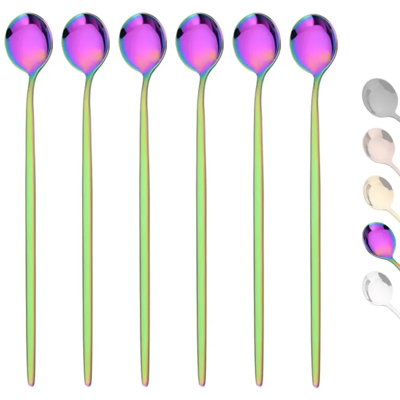 6Pcs Long Handle Ice Spoon Coffee Tea Stir Spoon Stainless Steel Gold Cutlery Set Dinnerware Kitchen Dinner Flatware Set