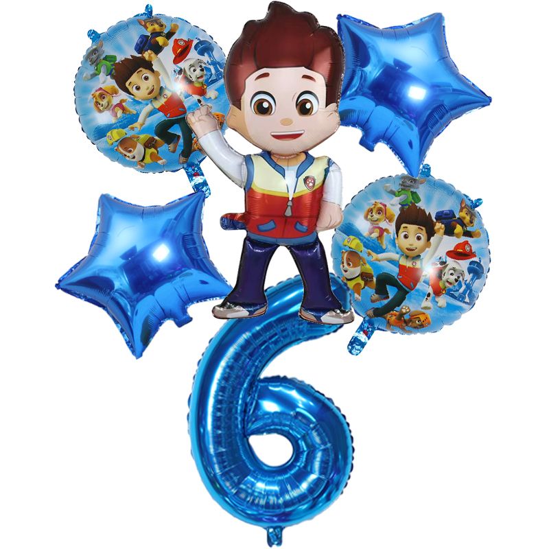 6pcs New Paw Patrol Birthday Balloon Set Ryder Rocky Zuma Everest Aluminum Foil Balloon Children's Birthday Decoration Articles
