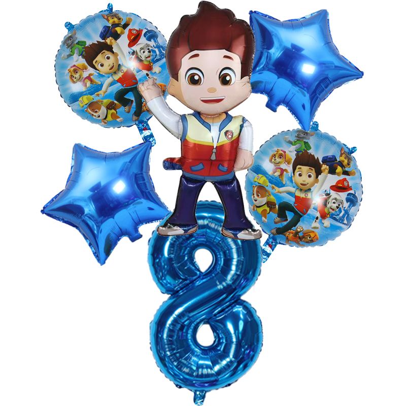 6pcs New Paw Patrol Birthday Balloon Set Ryder Rocky Zuma Everest Aluminum Foil Balloon Children's Birthday Decoration Articles