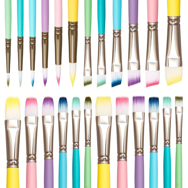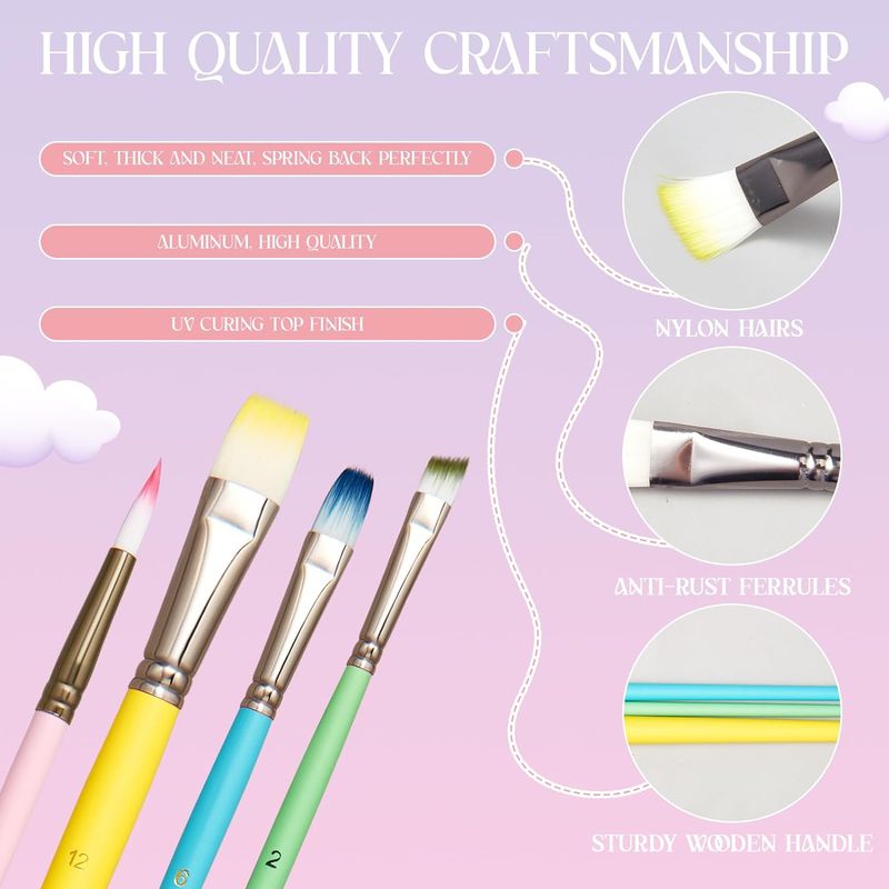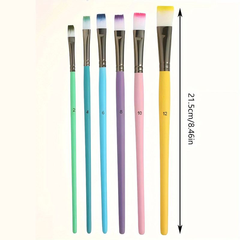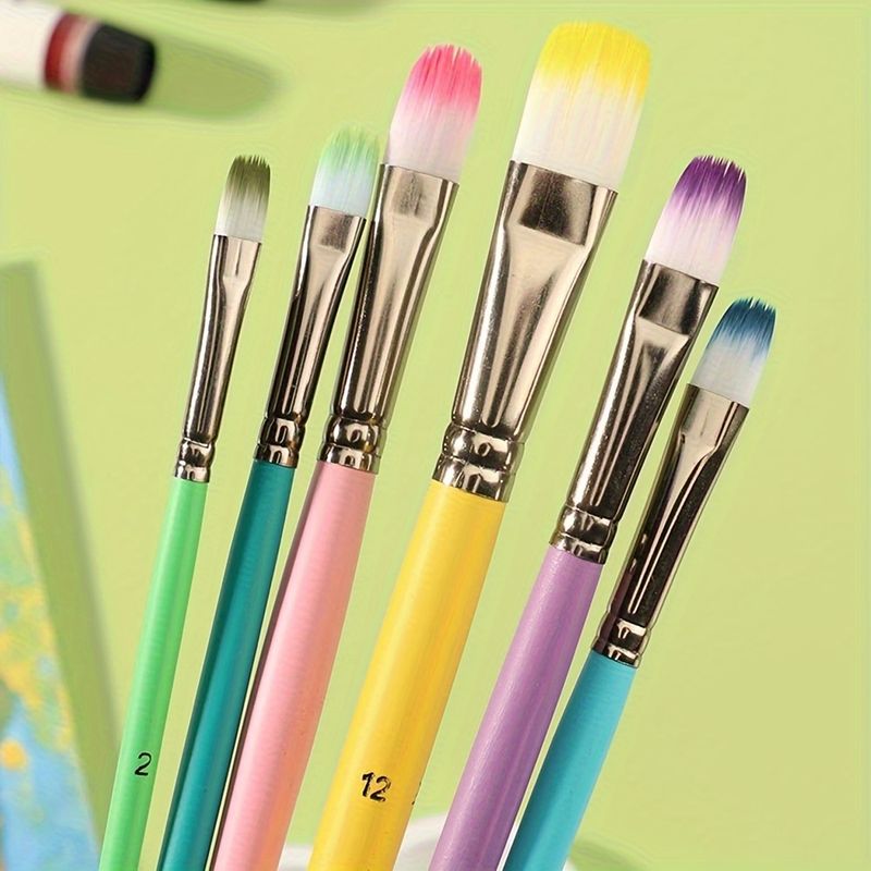 6pcs Professional Artist Paint Brushes Set - Fine Point, Wooden Handles, Nylon Round Pointed Flat Tips Multicolored Paint Brush