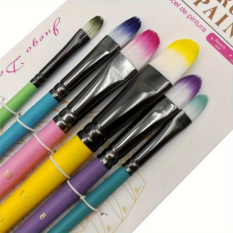 6pcs Professional Artist Paint Brushes Set - Fine Point, Wooden Handles, Nylon Round Pointed Flat Tips Multicolored Paint Brush