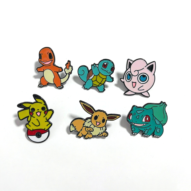 6pcs Set Anime Pokemon Enamel Pins - Pikachu Squirtle Gengar Funny Cosplay Brooches Cartoon Badges Lapel Pin Collection for Fans