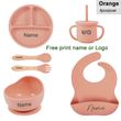 6Pcs Silicone Tableware For Kids Baby Feeding Sets Sucker Bowl Dining Plate Spoon Fork Bib Feeding Cup Personalized Name Children's Gift