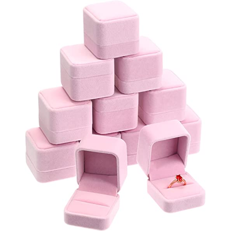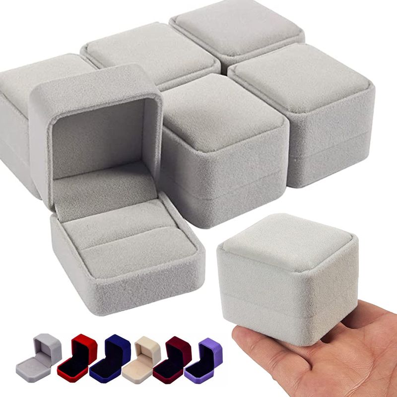 6PCS Square Red Velvet Ring Box Jewelry Case Storage Organizer Gift Earrings Packaging Box Portable Travel Wedding Wholesale
