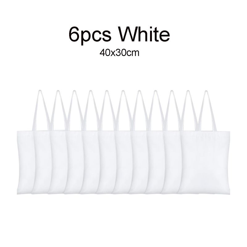 6pcs Sublimation Blank Polyester Tote Bags White Beige -40x30cm for Valentine's Day, DIY Tie-Dye, Souvenirs, and Events
