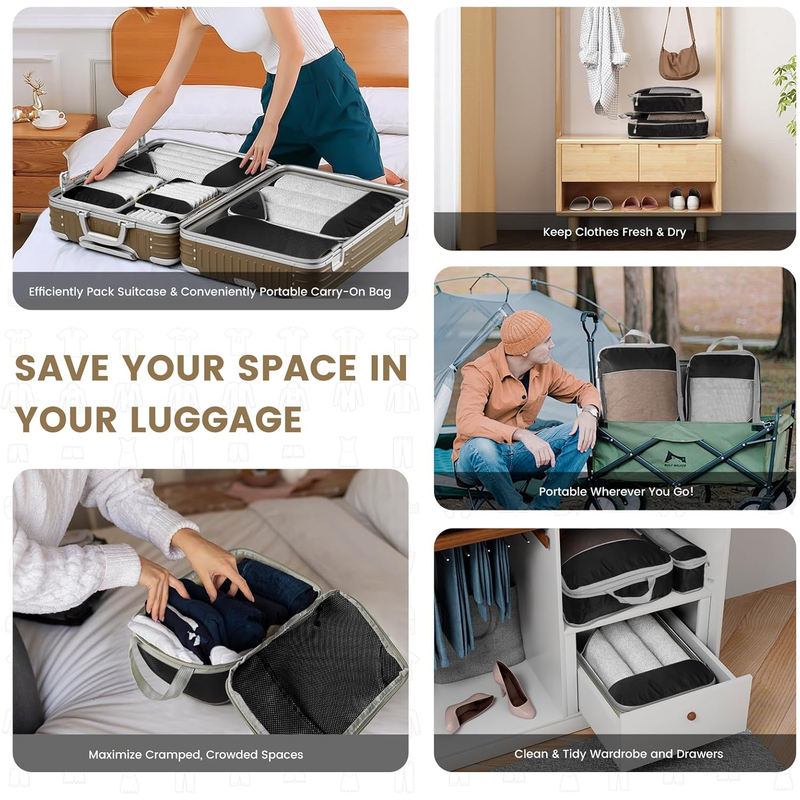Six sizes can be used for your deifferent packing purpose,save your place ,and make your luggage clean and tidy.
