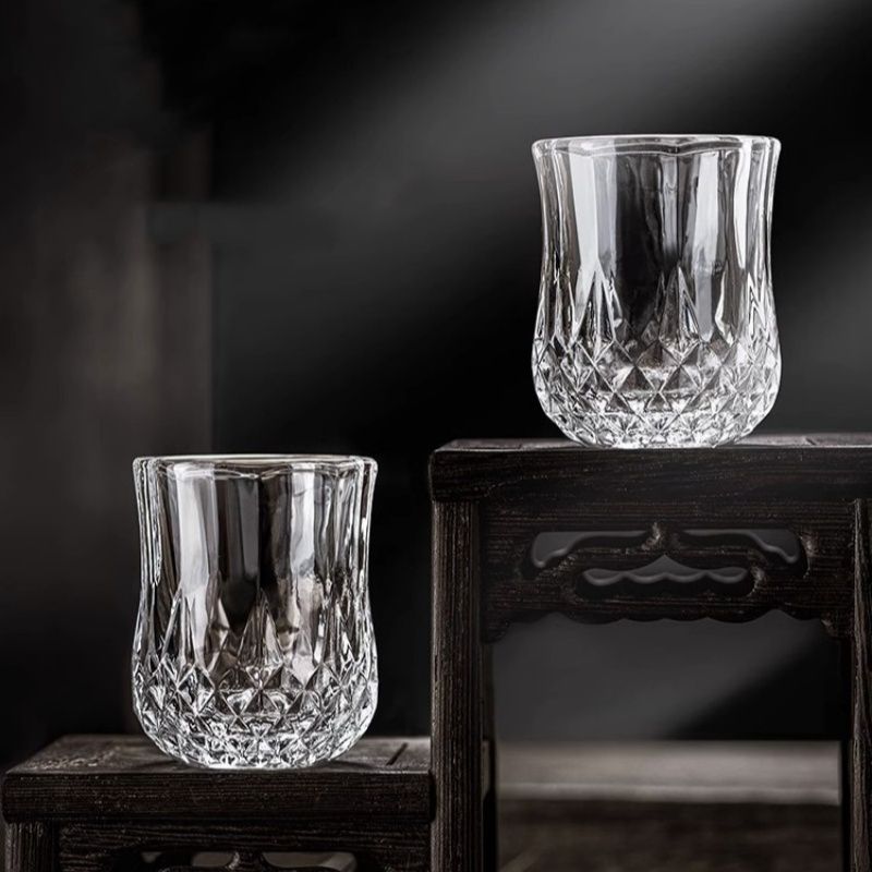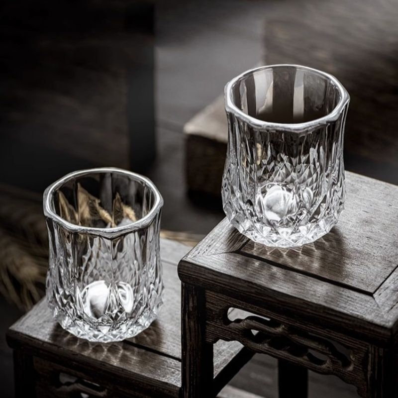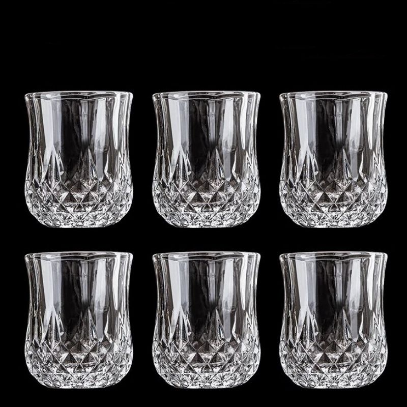 6Pcs Whiskey Glass Cup Rum Liqueur Mini Shot Glass Creative Diamond Shaped Vintage Relief Cup Household Party Bar Drinking Tools
