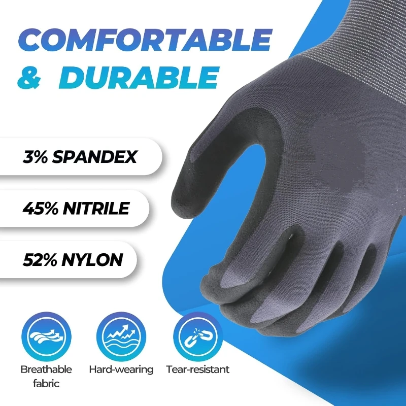 1. Superior Comfort and Breathability: Crafted with a 15-gauge nylon, these nitrile dotted gloves offer unparalleled softness and skin-friendliness. The lightweight and breathable design ensures comfort during extended wear, making them ideal for high-intensity tasks without causing hand fatigue.