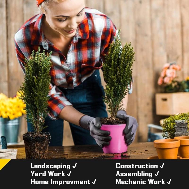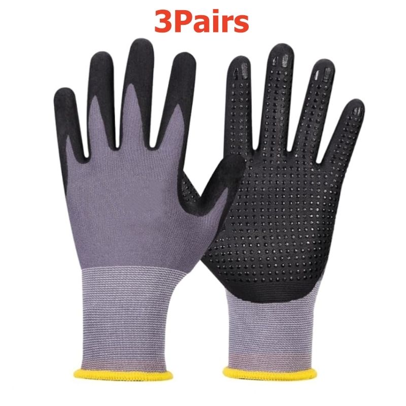 6PCS Work Gloves MicroFoam Nitrile Coated Endurance Seamless Knit Safety Work Gloves with Grip Dots for Gardening Yard Lawn Home