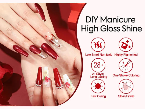 • SELF-LEVELING: Since the hema free nail gel polish texture is good, self-levels quickly, without spreading or flowing into the side edges or cuticles. The Nail Tech Professionals will be able to create a look-alike acrylic nail easily and faster, that will last longer than a normal gel polish service, and will grow the client's nails naturally.
