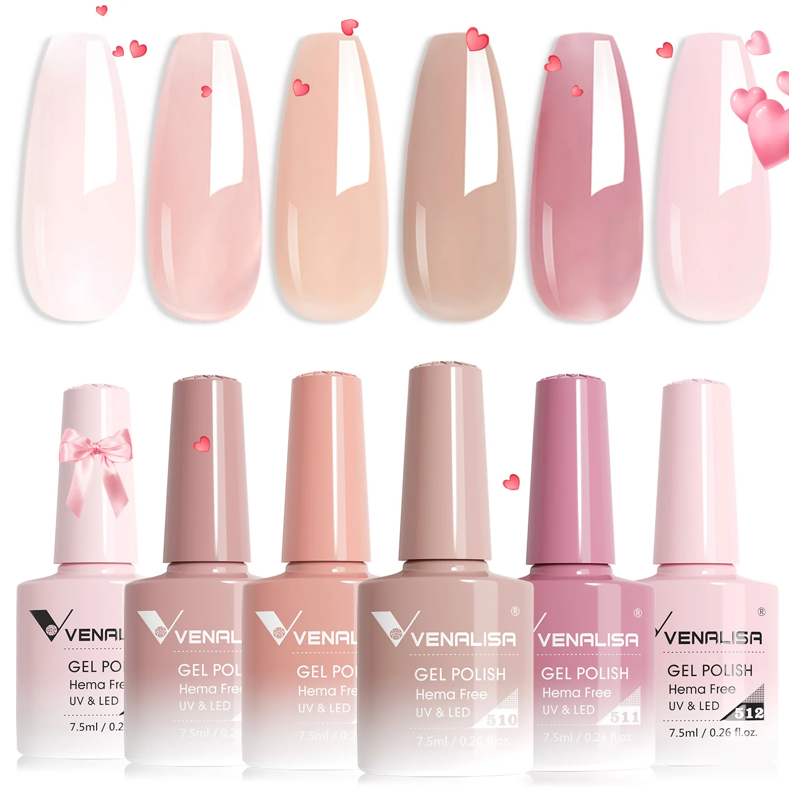 Venalisa jelly pink color collection nail gel polish kit 6pcs/set