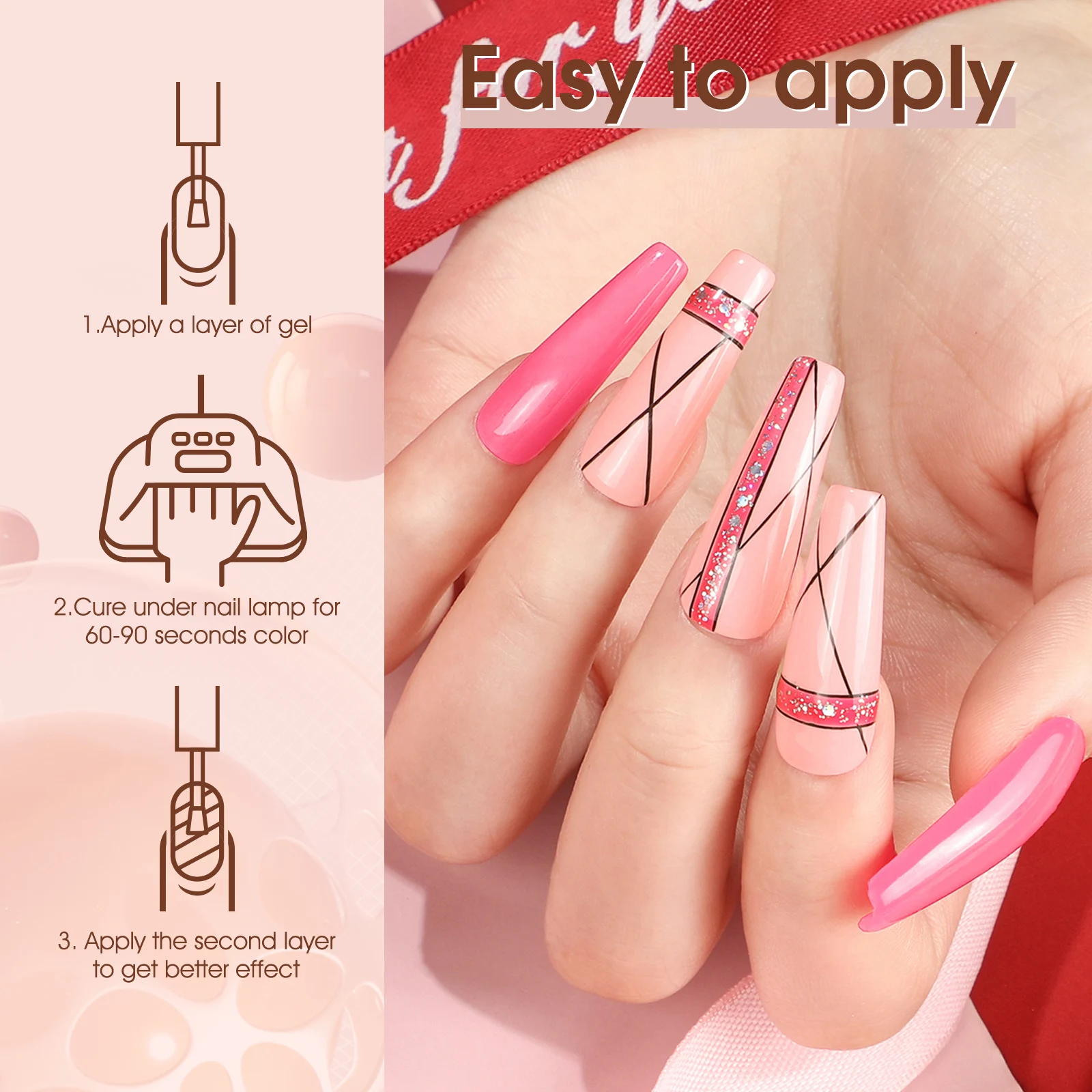 • PROFESSIONAL USE: This Rose Rubber Base Gel is a UV light curing polymer system for high performance and long-lasting high gloss anti-scratch, solvent, and weathering coatings, a game-changer for thin and weak nails. The hema free nail gel polish is a thicker self-leveling gel that creates a strong bond between the natural nail plate and gel polish colors. It has been specially designed to level out irregularities of the natural nail plate. The thick gel base coat will not chip easily and will last more than 28 days when applied correctly.