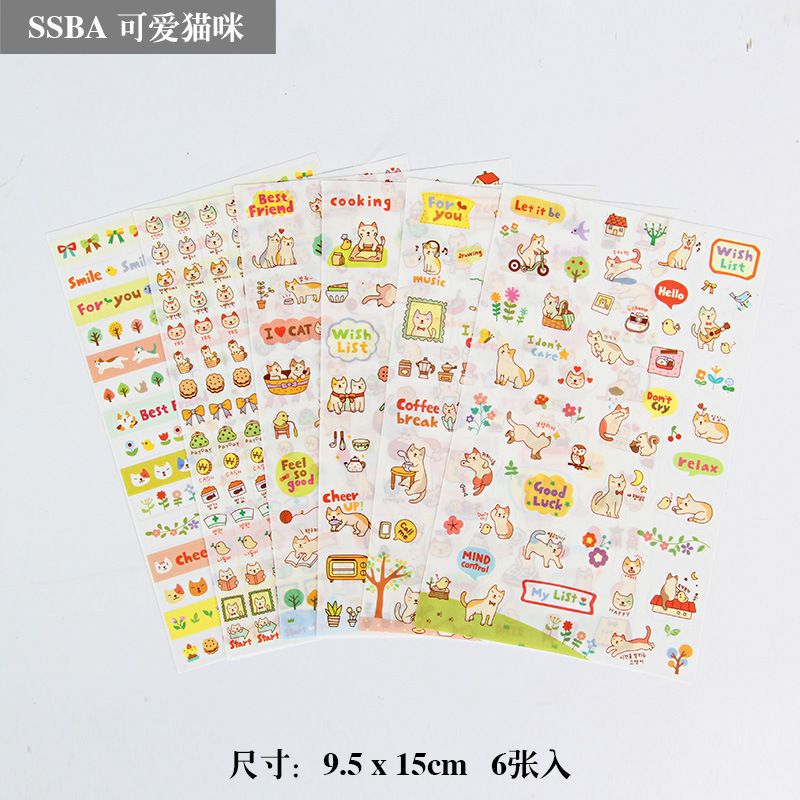 6pcs/lot Korean Waterproof Cartoon Cute Transparent Diy Decoration Stickers Hand Account Stickers Kawaii Plastic Cup Stickers