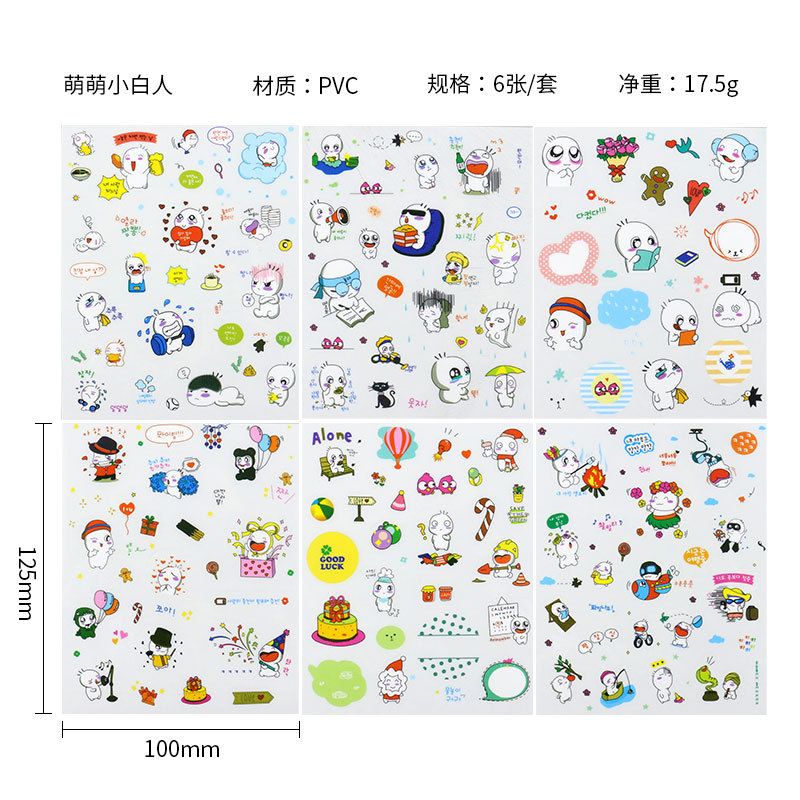 6pcs/lot Korean Waterproof Cartoon Cute Transparent Diy Decoration Stickers Hand Account Stickers Kawaii Plastic Cup Stickers