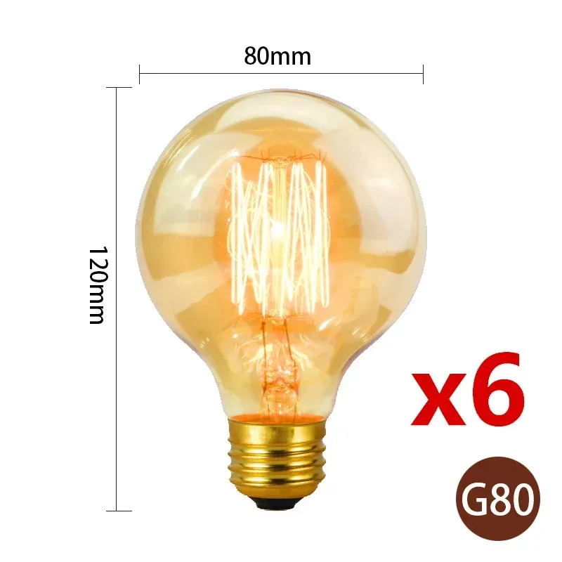 6pcs/lot Retro Edison Bulb C35 T45 ST64 G80 G95 A60 Filament Light 40W E27 Vintage Ampoule Incandescent Lamp Decorative Lights