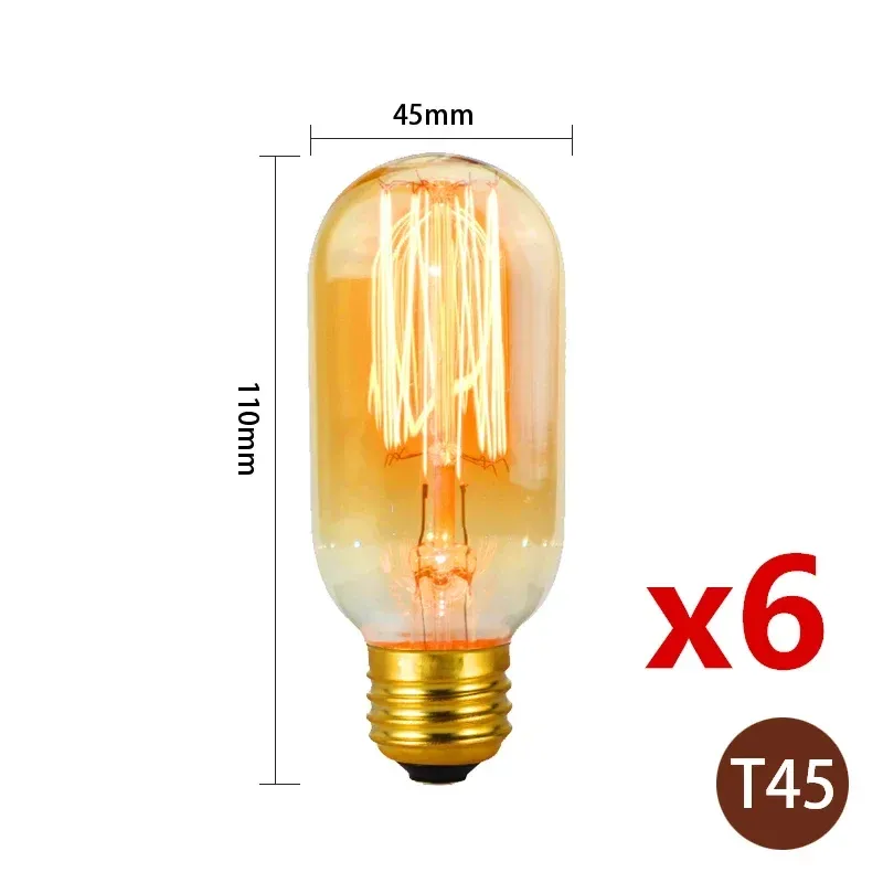 6pcs/lot Retro Edison Bulb C35 T45 ST64 G80 G95 A60 Filament Light 40W E27 Vintage Ampoule Incandescent Lamp Decorative Lights