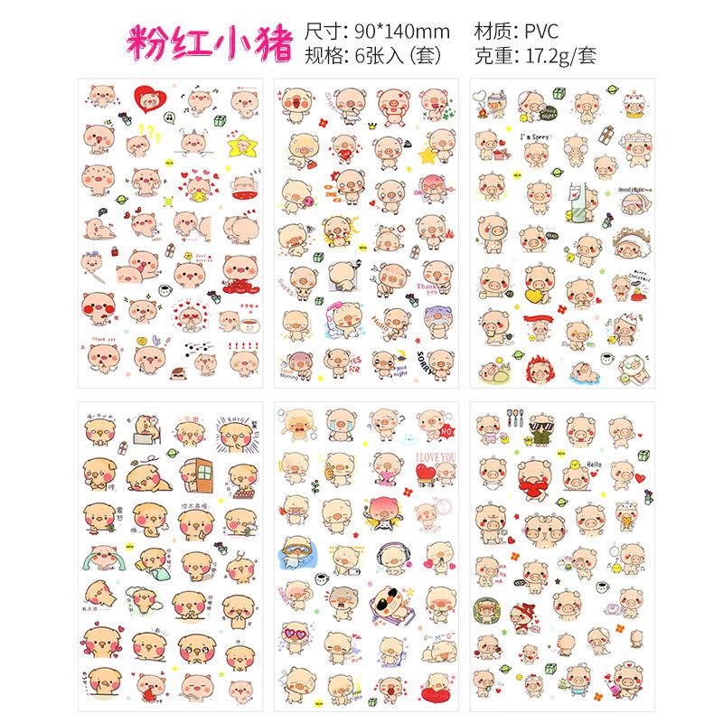 6Pcs/Lot Waterproof Cartoon Transparent Pvc Stickers DIY Hand Account Diary Decorative Stickers Kawaii Phone Cup Stickers