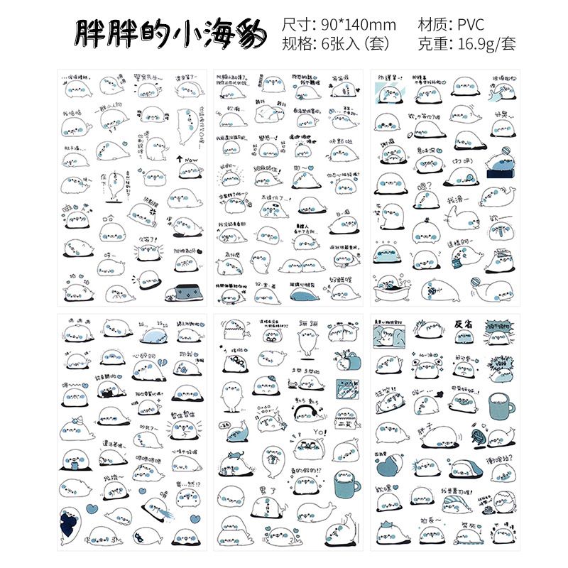 6Pcs/Lot Waterproof Cartoon Transparent Pvc Stickers DIY Hand Account Diary Decorative Stickers Kawaii Phone Cup Stickers