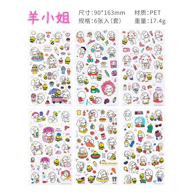 6Pcs/Lot Waterproof Cartoon Transparent Pvc Stickers DIY Hand Account Diary Decorative Stickers Kawaii Phone Cup Stickers