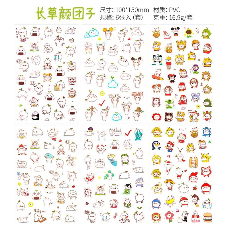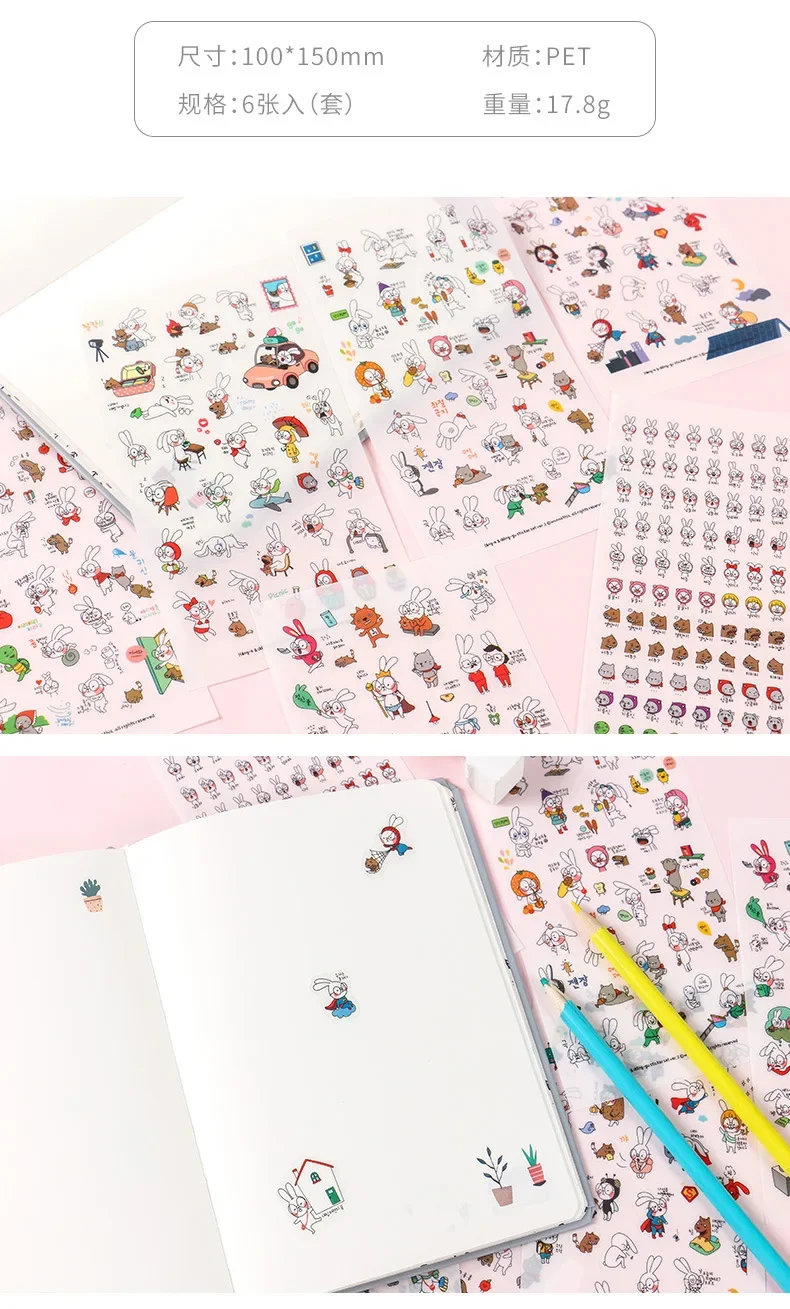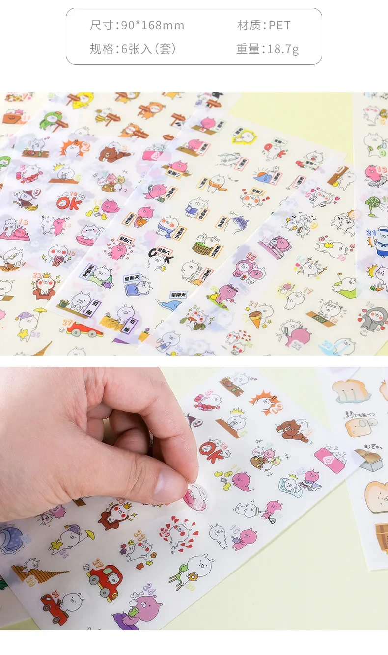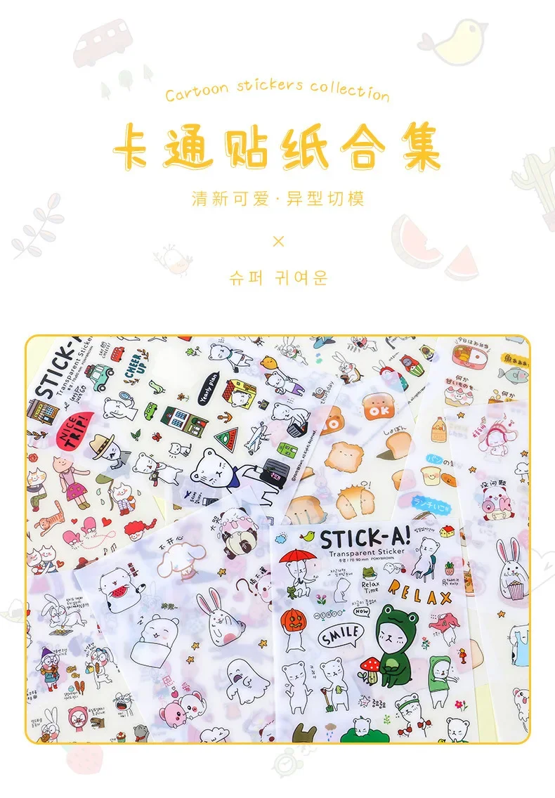 6Pcs/Lot Waterproof Cartoon Transparent Pvc Stickers DIY Hand Account Diary Decorative Stickers Kawaii Phone Cup Stickers