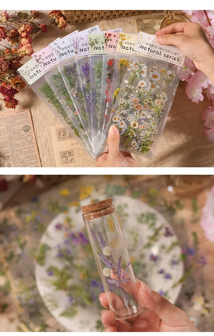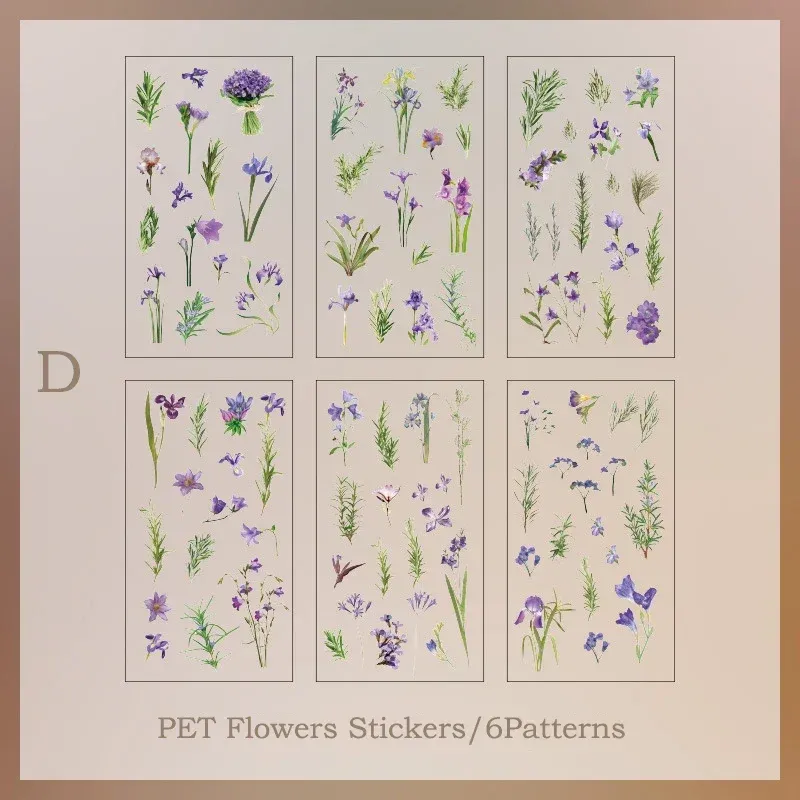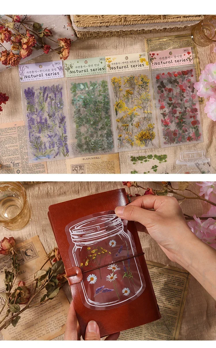 6pcs/pack Transparent Flowers Plants PET Decorative Stickers Diary Scrapbooking Material Deco Album Stationery Stickers