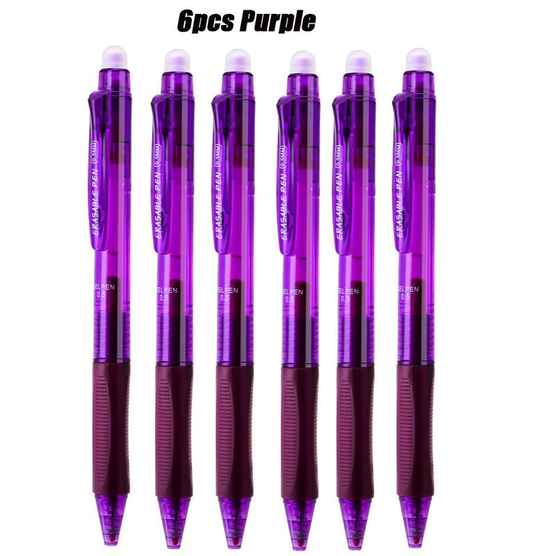 6pcs/set 0.5mm 6 Color Large Capacity Erasable Gel Pens, Washable Handle Replacement Refills Writing Stationery Supplies