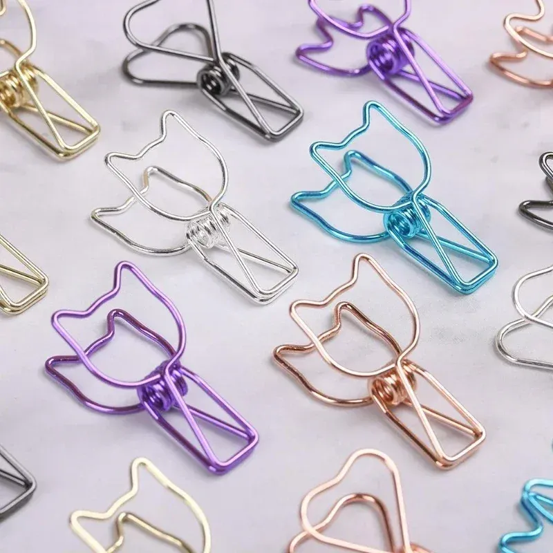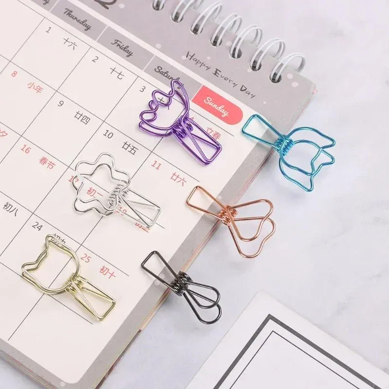 6PCs/Set Hollowed Out Design Metal Binder Clip Long Tail Office Hand Book Folder Paper Organizer Stationery Fish
