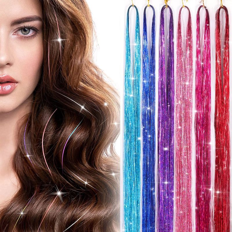 6Pcs/set Sparkle Shiny Hair Tinsel Hair Extensions Dazzles Women Hippie for Braiding Headdress Hair Braiding Tools Long 60cm