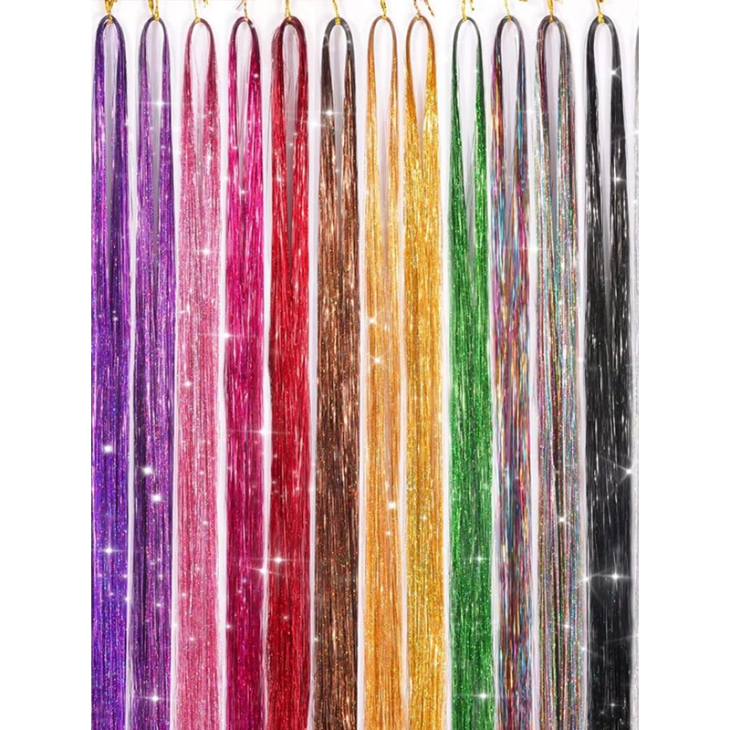 6Pcs/set Sparkle Shiny Hair Tinsel Hair Extensions Dazzles Women Hippie for Braiding Headdress Hair Braiding Tools Long 60cm