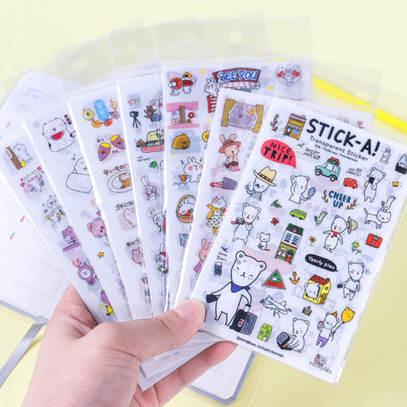 6Pieces/Set Transparent Pvc Waterproof Cartoon Sticker DIY Hand Account Decorative Stickers Kawaii Phone Cup Stickers