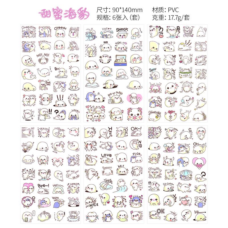 6Pieces/Set Transparent Pvc Waterproof Cartoon Sticker DIY Hand Account Decorative Stickers Kawaii Phone Cup Stickers
