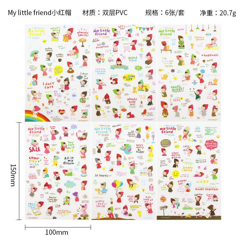 6Pieces/Set Transparent Pvc Waterproof Cartoon Sticker DIY Hand Account Decorative Stickers Kawaii Phone Cup Stickers