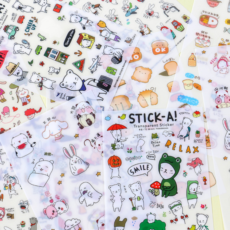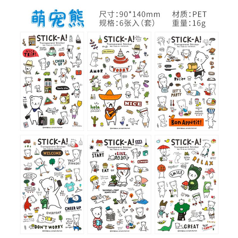 6Pieces/Set Transparent Pvc Waterproof Cartoon Sticker DIY Hand Account Decorative Stickers Kawaii Phone Cup Stickers