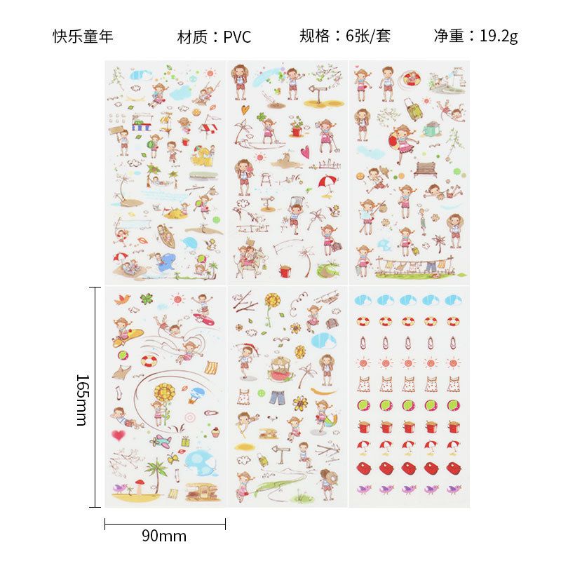 6Pieces/Set Transparent Pvc Waterproof Cartoon Sticker DIY Hand Account Decorative Stickers Kawaii Phone Cup Stickers