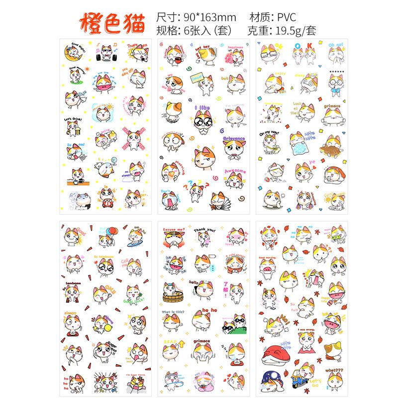 6Pieces/Set Transparent Pvc Waterproof Cartoon Sticker DIY Hand Account Decorative Stickers Kawaii Phone Cup Stickers