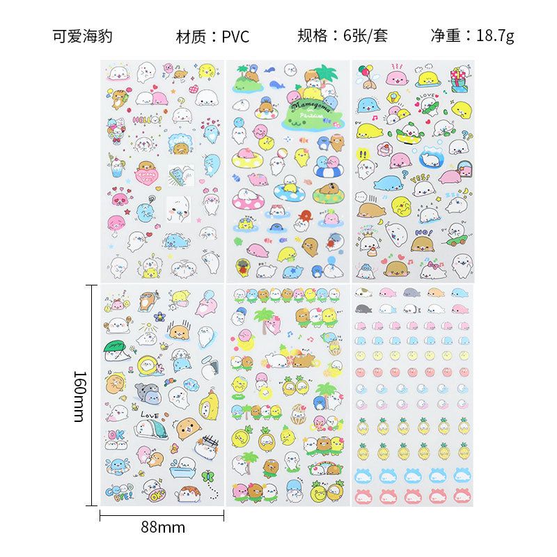 6Pieces/Set Transparent Pvc Waterproof Cartoon Sticker DIY Hand Account Decorative Stickers Kawaii Phone Cup Stickers