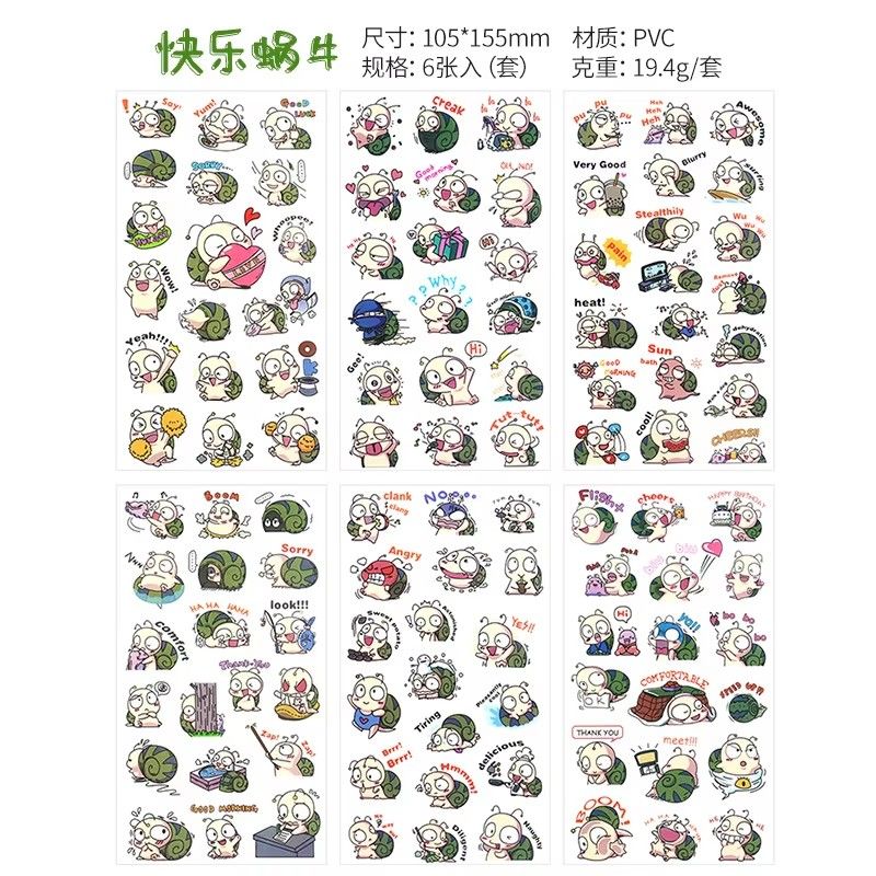 6Pieces/Set Transparent Pvc Waterproof Cartoon Sticker DIY Hand Account Decorative Stickers Kawaii Phone Cup Stickers