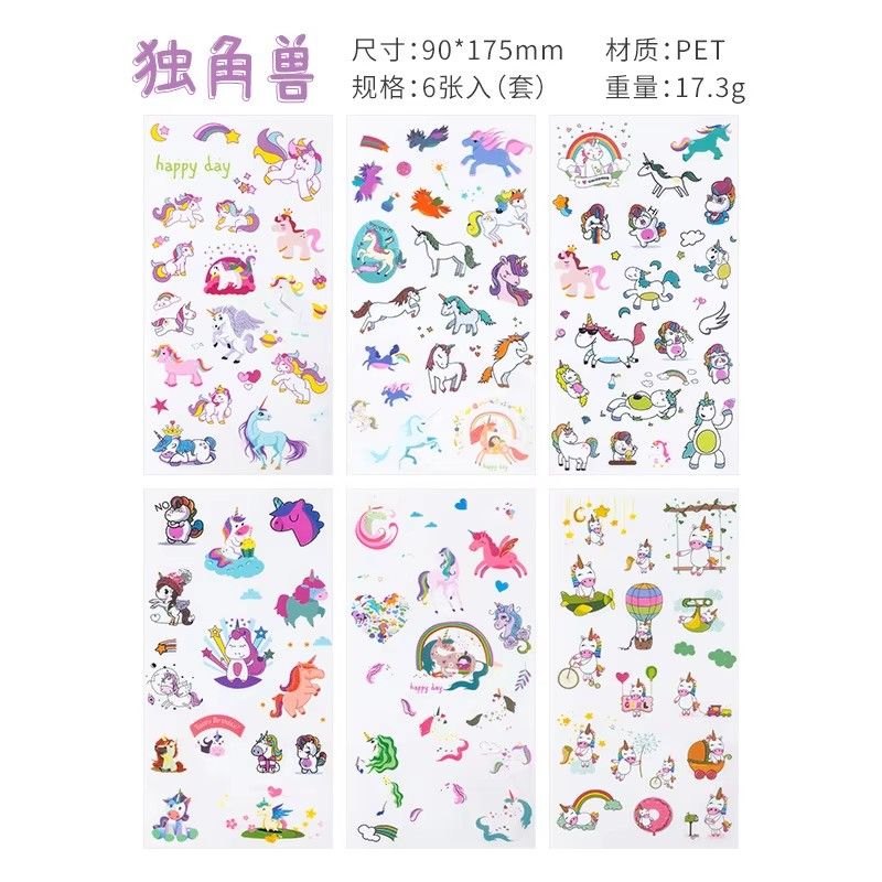 6Pieces/Set Transparent Pvc Waterproof Cartoon Sticker DIY Hand Account Decorative Stickers Kawaii Phone Cup Stickers