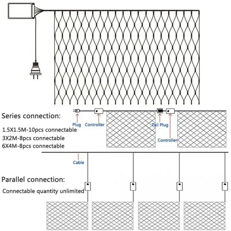 6x4M 3x3M LED Net Mesh Light Christmas Window Curtain String Light Outdoor Fairy Light Garland for Wedding Holiday Decor Lamp