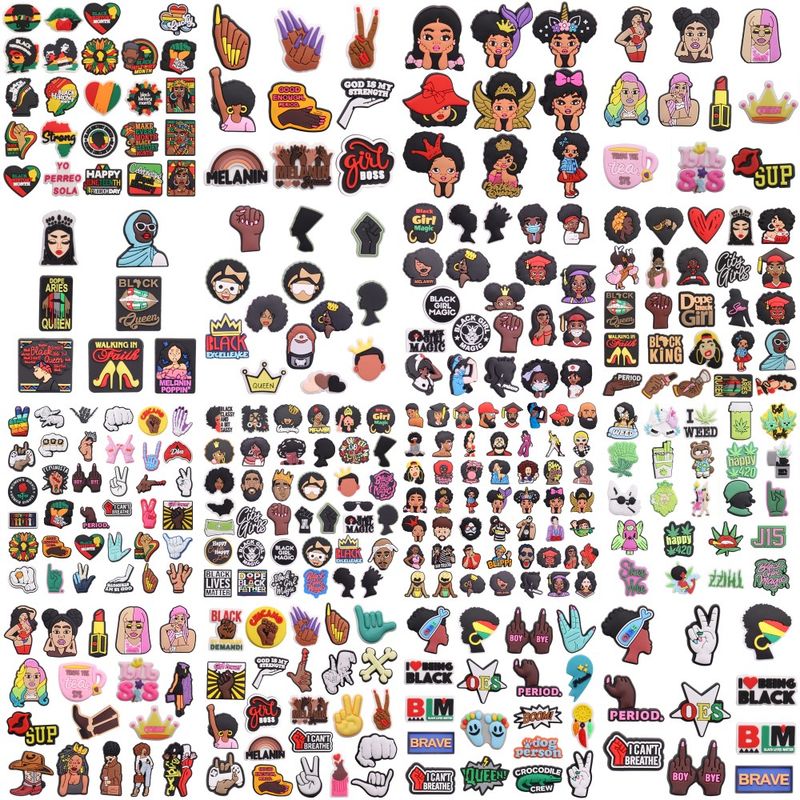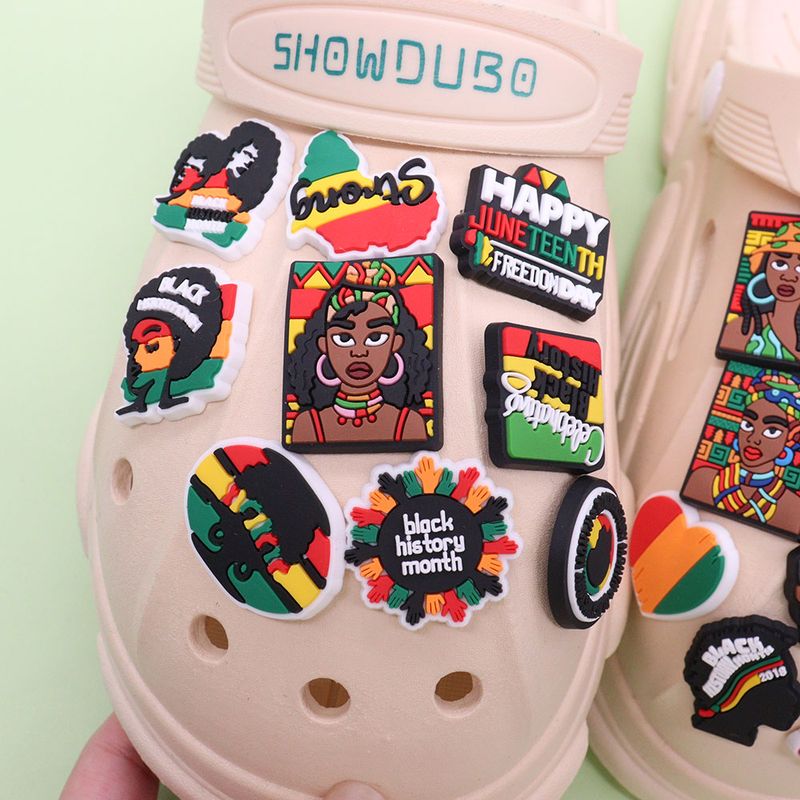 7-51Pcs BLM Girl Power Melanin Black History Month Queen Boy Bye Period PVC Shoe Charms For Clogs Pins Slipper Accessories